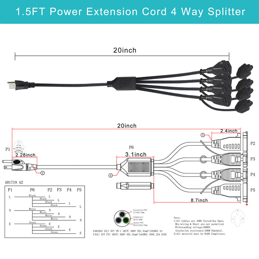 Cable Gauge:SVT/SJT 18/16/14AWG