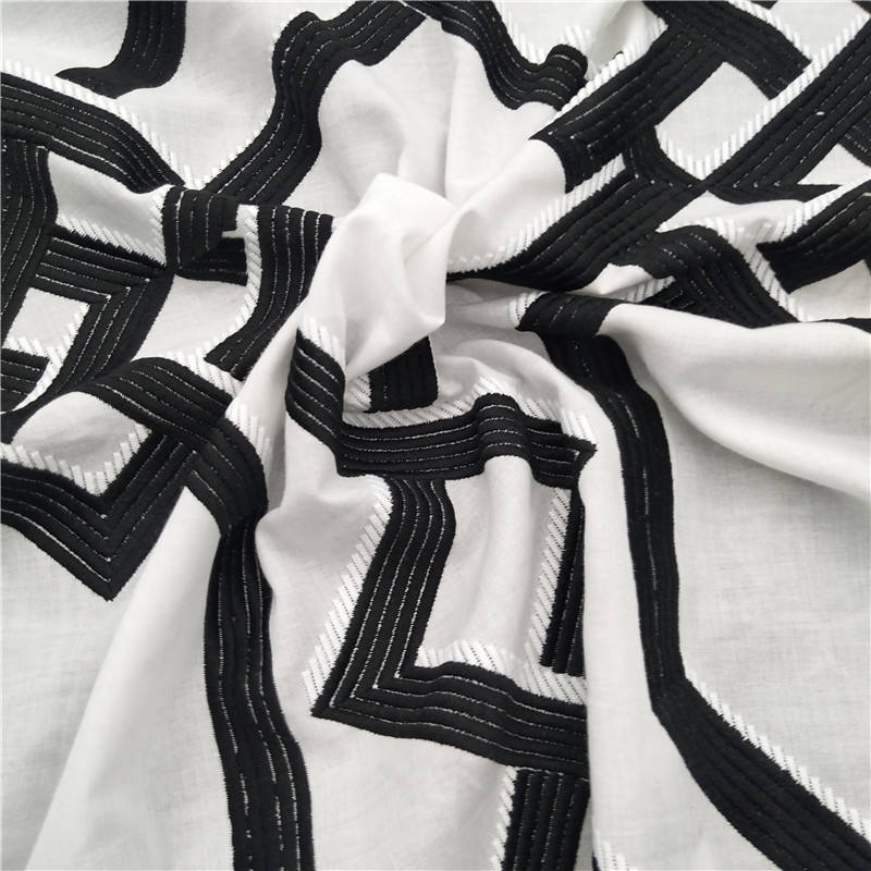 ผ้าคอตตอนปักลวดลายเรขาคณิตสีดำขนาด125ซม. ผ้าตกแต่งบ้านไม่เหมือนใคร