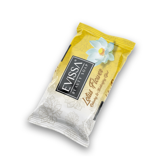 สบู่ดอกบัว 125 กรัม แบบฟลอว์แพ็ค สบู่ความงามจากธรรมชาติ ปราศจากสารเคมี ช่วยเพิ่มความชุ่มชื้น กลิ่นหอมดอกไม้ บรรจุภัณฑ์สำหรับส่งออกจำนวนมาก EVISSA