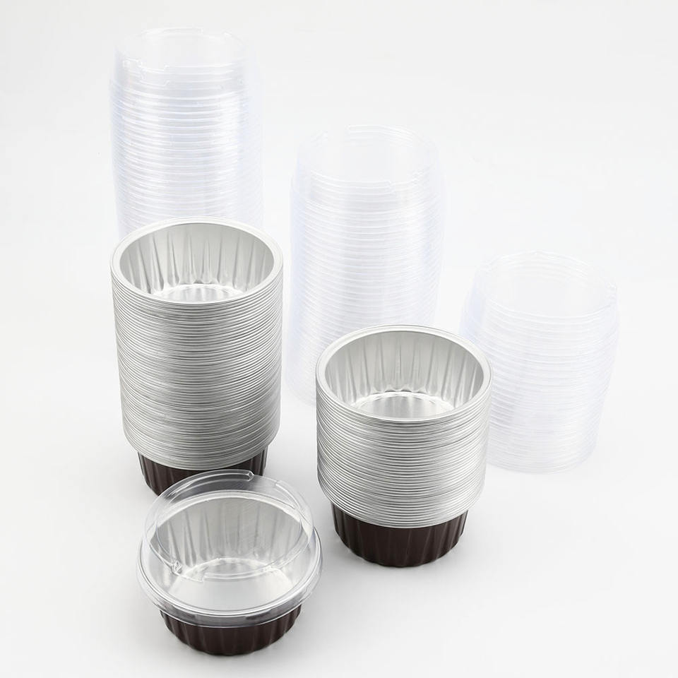 ภาชนะใส่อาหารแบบใช้แล้วทิ้ง ขนาด 125 มล./4.4 ออนซ์ ทรงกลม ฝาปิดอะลูมิเนียมฟอยล์ วัสดุ PET ปลอดภัยสำหรับอาหาร เหมาะสำหรับอบเค้ก พาย และของหวาน