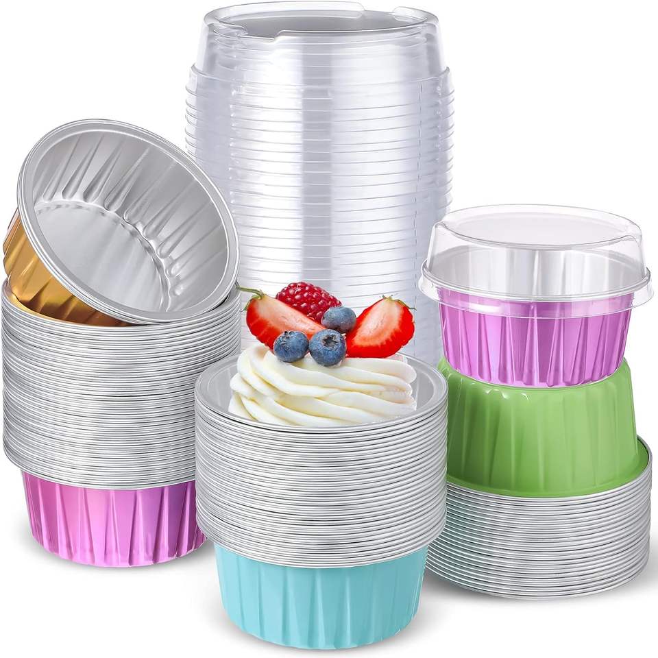 ภาชนะอลูมิเนียมทรงกลมขนาด 125 มล. 5 ออนซ์ สำหรับอบ ย่าง ทอด ใช้แล้วทิ้ง รีไซเคิลได้