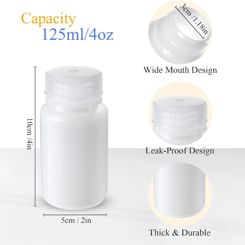 125ml HDPE Pill Bottle Plastic Wide Mouth Medicine Bottle with Screw Cap Pharmaceutical for Supplement Packaging