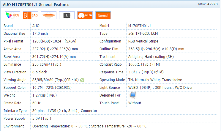 17นิ้วขนาดจอแสดงผล
