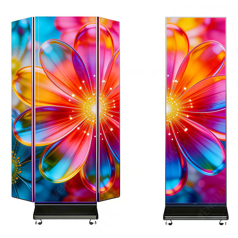 หน้าจอแสดงผลดิจิทัลแบบสามพับสองด้าน ขนาด 1280x1920 มม. ความละเอียด 4K สำหรับป้ายโฆษณา LED เหมาะสำหรับห้างสรรพสินค้า รถไฟใต้ดิน งานแสดงสินค้า และโปรโมชั่นต่างๆ