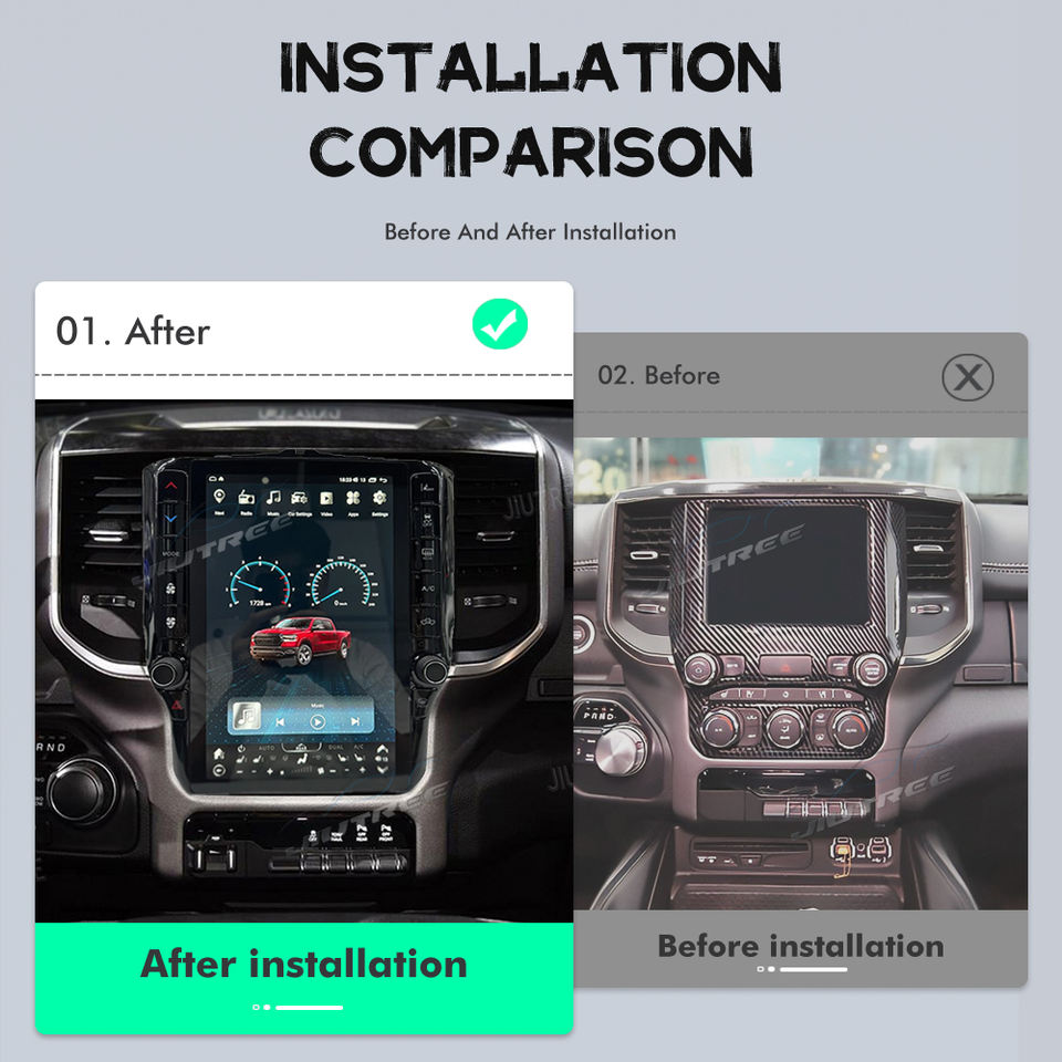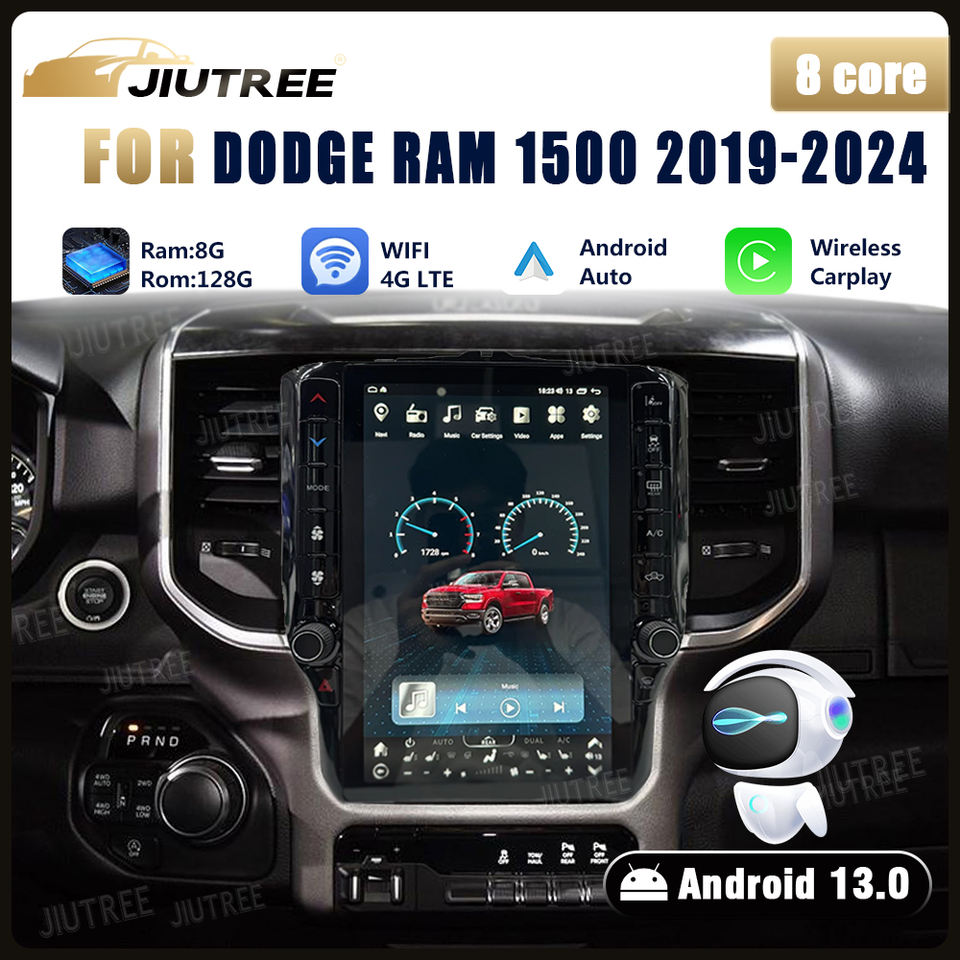 เครื่องเล่นมัลติมีเดียในรถยนต์ระบบ Android 13 ขนาด 128G สำหรับ Dodge RAM 1500 ปี 2019-2024 พร้อมจอภาพแนวตั้ง รองรับ Carplay ระบบนำทาง GPS และชุดควบคุมหลัก