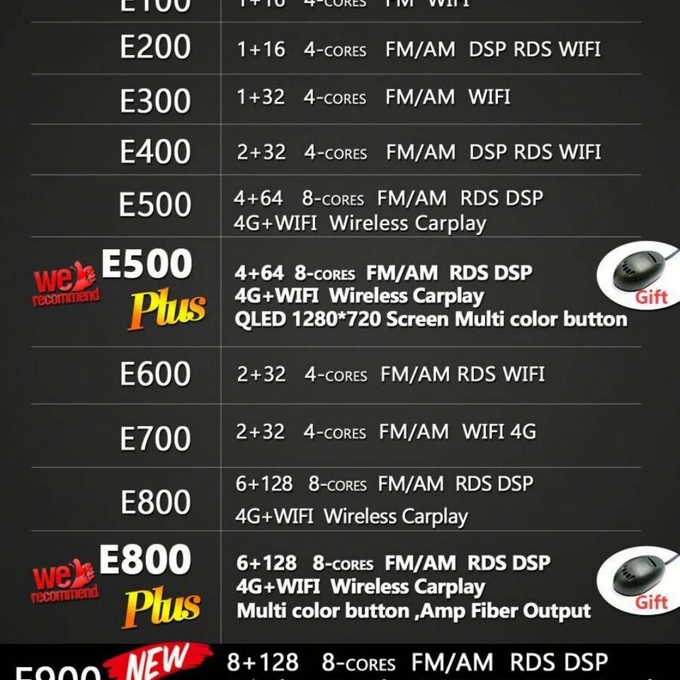 GPS, สเตอริโอ, แฮนด์ฟรี, DSP, คาร์เพลย์, Android Auto, ควบคุมพวงมาลัยรถยนต์, ลำโพงในตัวฟังก์ชัน