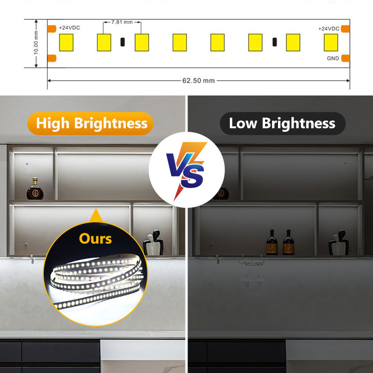 ชื่อสินค้า:แถบไฟ LED แรงดันคงที่ DC24V 2220m/M 180lm/W 128leds/m ชนิด 2835