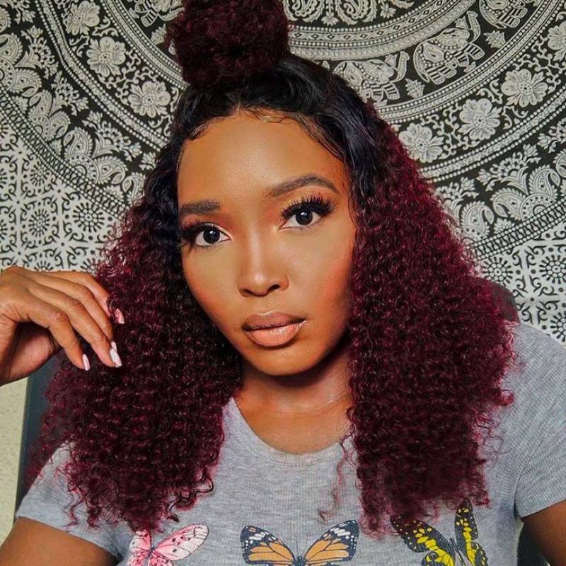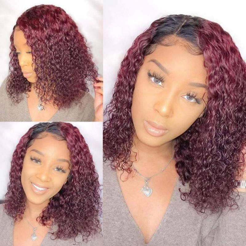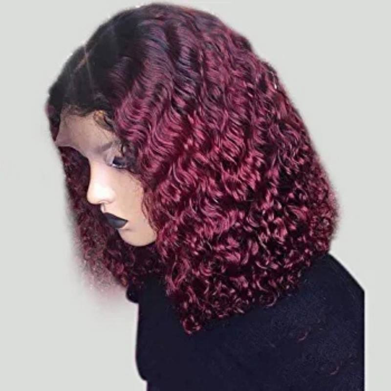 วิกผมแท้12A หนา200% 13x4ลูกไม้ด้านหน้าบ๊อบผมหยิก10-16นิ้ว # 1B/99J ไล่ระดับสีก่อนถอนผมผู้หญิงอเมริกัน