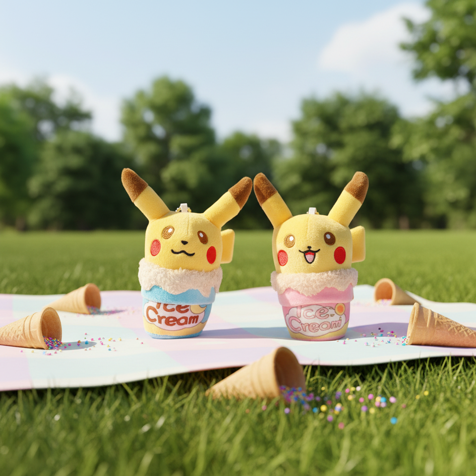 พวงกุญแจตุ๊กตาพิคาชูหูนุ่ม ขนาด 12 ซม. 4 นิ้ว สไตล์ไอศกรีม สำหรับฤดูร้อน ขายส่งสำหรับตู้ขายของเล่นโปเกมอน