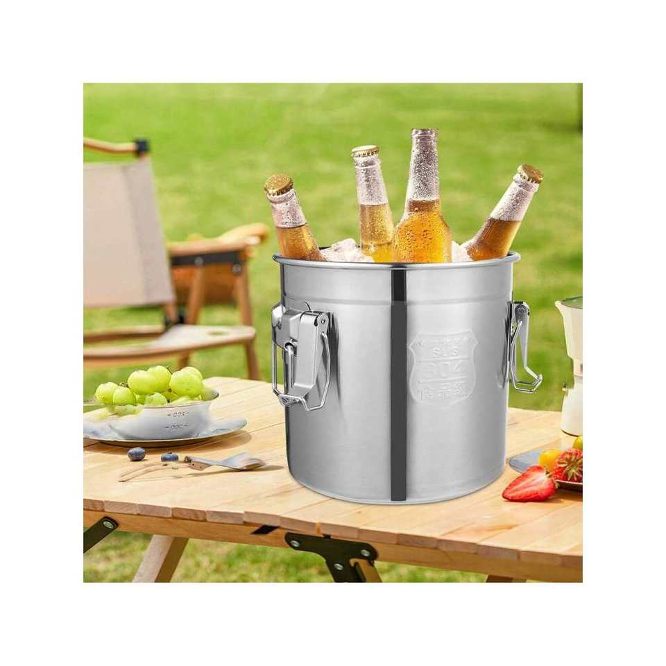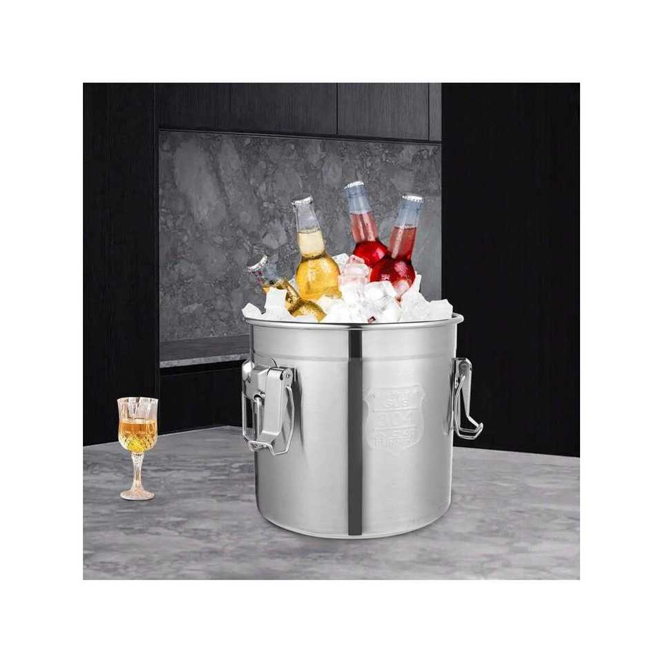 12L Stainless Steel Storage Bucket Strong Easy Clean Sealed Structure Cylinder Shape for Beverages Ice Buckets Beverage Tubs
