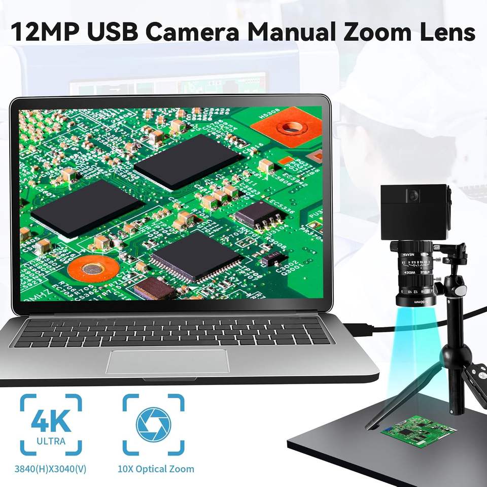 เว็บแคม USB 12MP 4K 1080P 120fps กล้องความเร็วสูง ซูมแบบแมนนวล 10 เท่า (5-50 มม. CS-Mount) ถ่ายภาพระยะใกล้, เว็บแคม UVC สำหรับพีซีแบบเสียบใช้งานได้ทันที