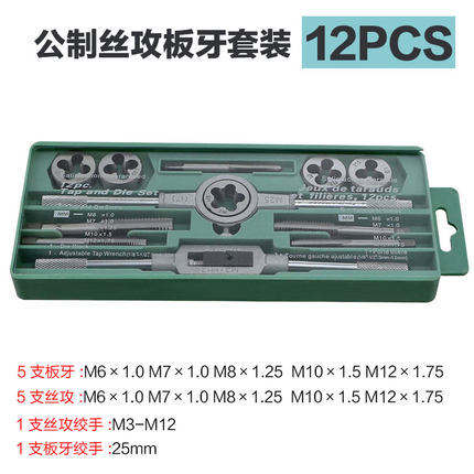 ชุดเครื่องมือต๊าปและได 12 ชิ้น ทำจากเหล็ก สำหรับต๊าปเกลียวด้วยมือ ใช้กับเครื่องจักรและเครื่องมือ