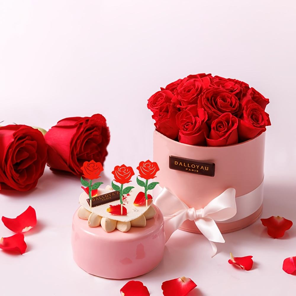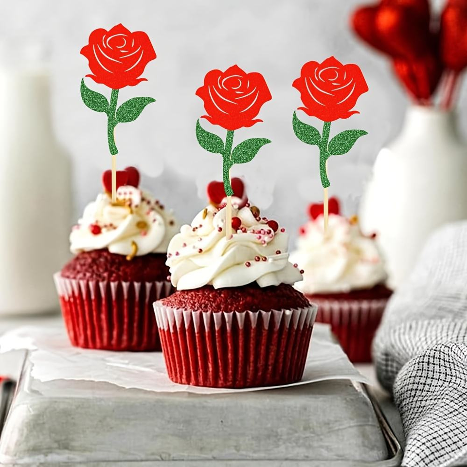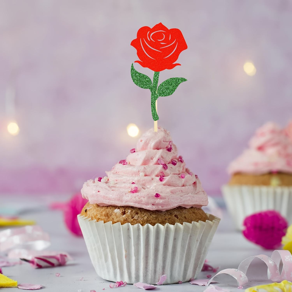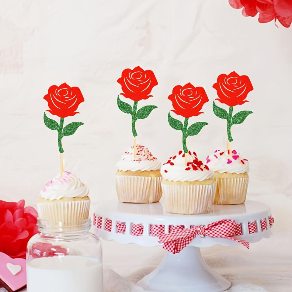 ท็อปเปอร์คัพเค้กรูปดอกกุหลาบ 12 ชิ้น สำหรับวันวาเลนไทน์ ใช้ตกแต่งเค้กในงานขอแต่งงาน งานหมั้น และงานแต่งงาน