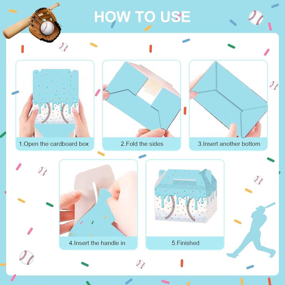 กล่องของขวัญสำหรับผู้รักกีฬาเบสบอล 12 ชิ้น กล่องกระดาษลายเบสบอลสำหรับคนรักกีฬาเบสบอล สำหรับงานเฉลิมฉลองกีฬา