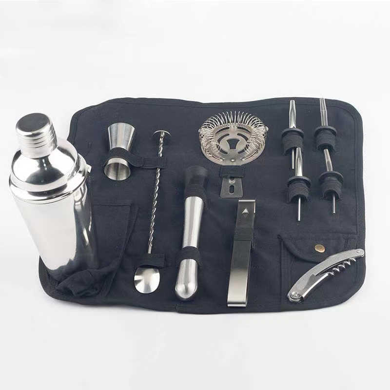 ชุดเชคเกอร์ค็อกเทลสเตนเลสสตีล12ชิ้น,ชุดบาร์เทนเดอร์เครื่องผสมมาร์ตินี่ผสมไวน์เครื่องปั่นบอสตันสำหรับปาร์ตี้บาร์ชุดกระเป๋าเครื่องมือม้วนขึ้น
