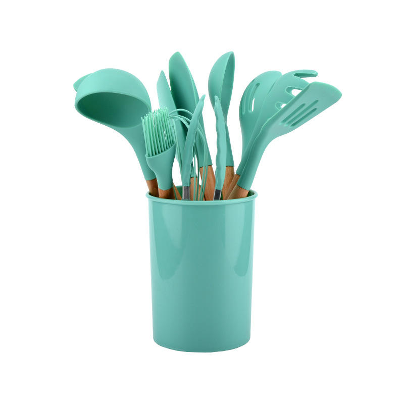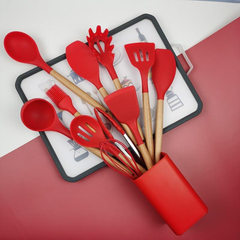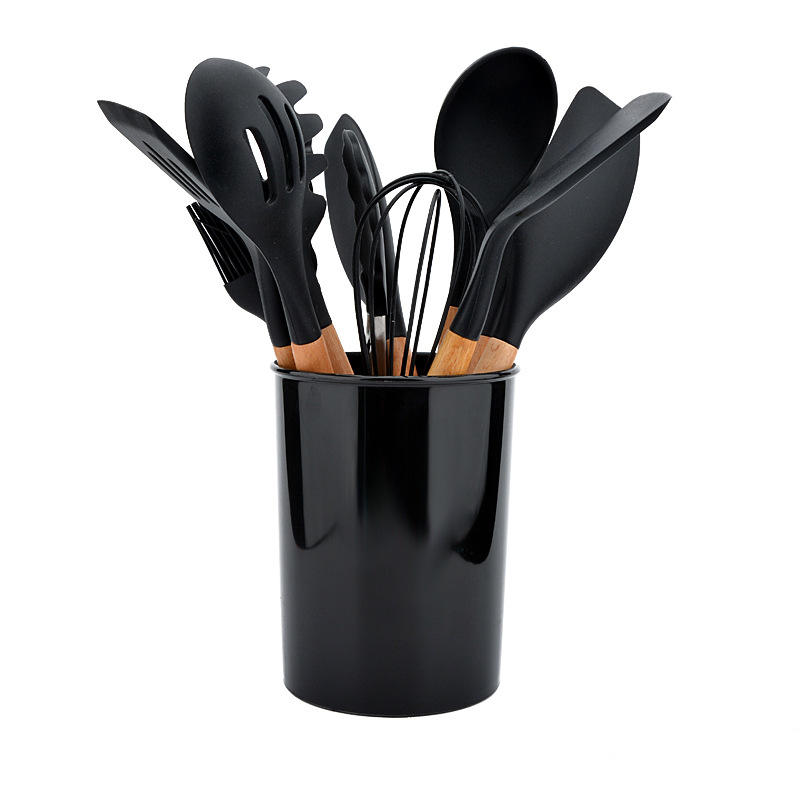 ชุดเครื่องใช้ในครัวพร้อมที่ใส่12ชิ้น,เครื่องมือห้องครัวซิลิโคนที่จับไม้พายมีช่องตะหลิวช้อนพลิก