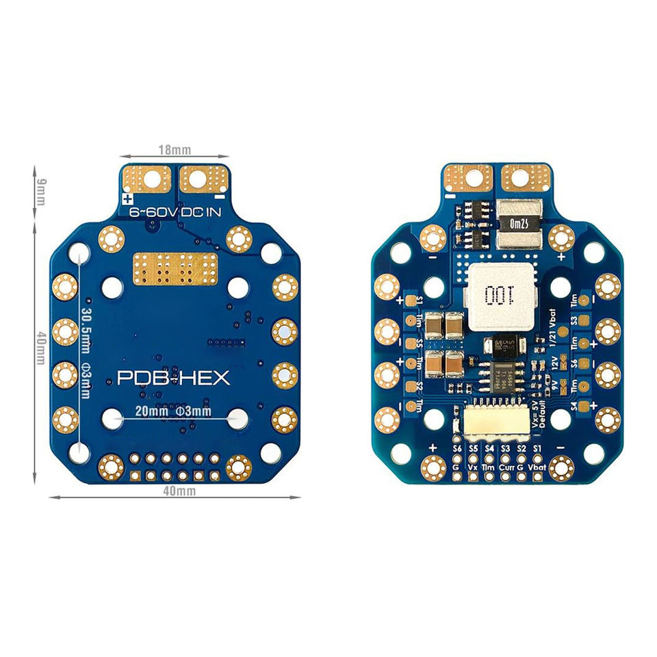 แผงวงจรจ่ายไฟ 12S PDB รองรับไฟเข้า 6~60V DC ตัวควบคุม 5A จ่ายไฟออก 5V/9V/12V พร้อมเซ็นเซอร์วัดกระแส 264A สำหรับโดรนควอดคอปเตอร์ FPV ผลิตในประเทศจีน