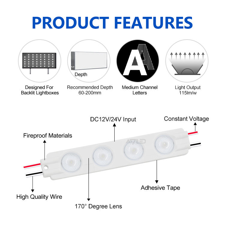 โมดูล LED 12V 1.6W กำลังสูง CE ROHS สำหรับช่องตัวอักษรไฟ IP65 7000K 5ปีโมดูลเลนส์ SMD2835ไฟ LED