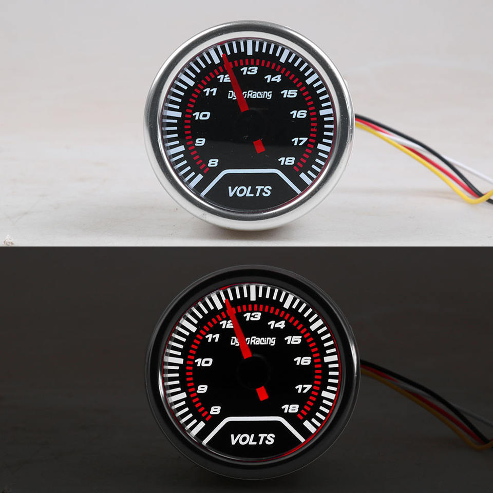โวลต์มิเตอร์แบบแว่นกันแดด 12V 2 นิ้ว สำหรับตกแต่งรถยนต์ พร้อมไฟสีขาว 52 มม. 8-18