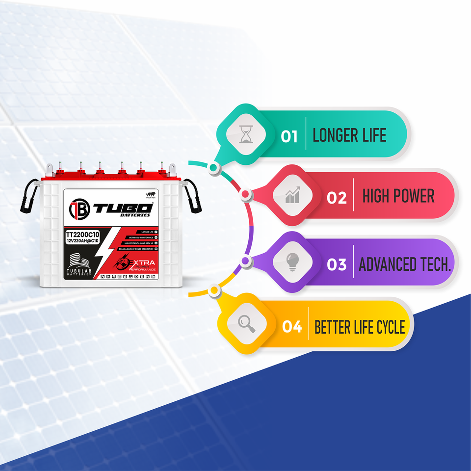 อินเวอร์เตอร์สำรองไฟฟ้าเชิงพาณิชย์ 12V 220AhC10 สำหรับติดตั้งแผงโซลาร์เซลล์ แบตเตอรี่ทรงกระบอกสูง ผลิตในอินเดีย