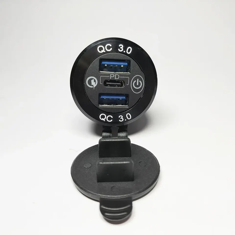 ที่ชาร์จในรถยนต์ 12V-24V 60W ช่องเสียบ USB สามช่อง PD3.0 และ QC3.0 คู่ พร้อมสวิตช์สัมผัส อะแดปเตอร์ชาร์จเร็ว สำหรับรถบัส รถพ่วง เรือ