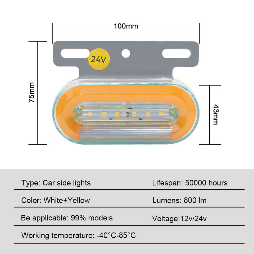 ไฟข้างรถยนต์ LED สีเหลืองอำพัน 12V-24V 800LM 8W IP68 กันน้ำ สำหรับรถยนต์ รถแทรกเตอร์ รถกึ่งพ่วง รถบัส ใช้แทนกันได้ทุกแบบ