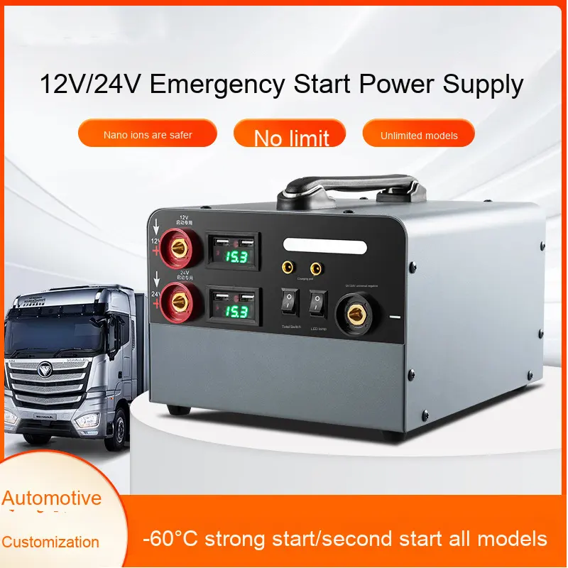 เครื่องจ่ายไฟฉุกเฉินสำหรับรถยนต์ 12V/24V ตัวช่วยสตาร์ทรถยนต์ แบตเตอรี่แรงสำหรับรถบรรทุกขนาดใหญ่ พกพาสะดวก ใช้สำหรับเดินทาง แบตสำรอง MPPT