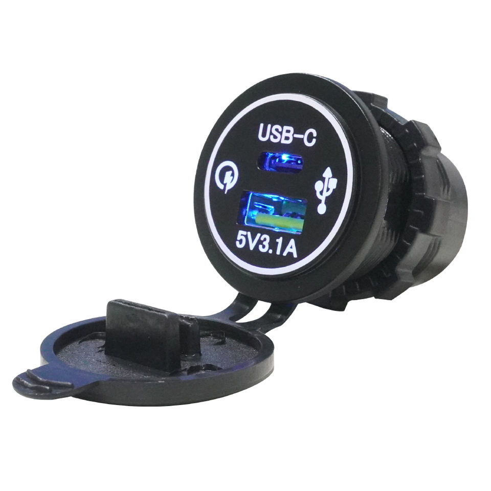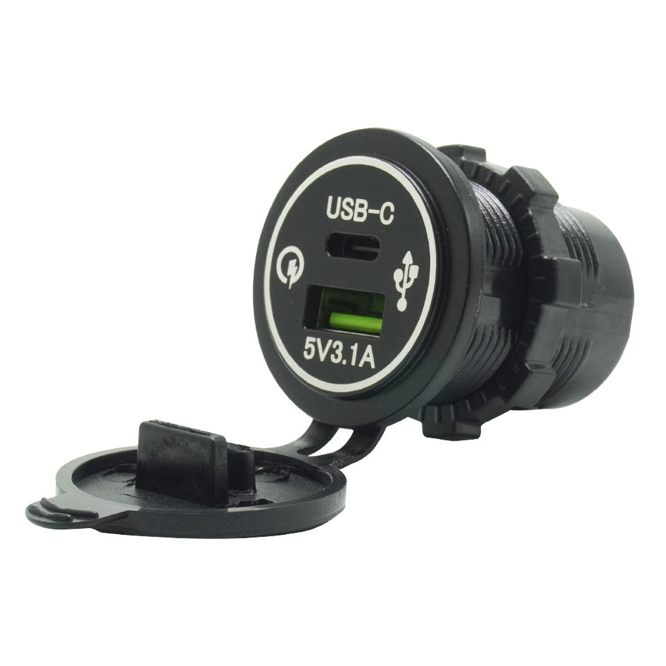 ที่ชาร์จในรถยนต์แบบติดตั้งบนแผง 12V 24V ชาร์จเร็ว 15.5W USB-C USB-A ช่องเสียบคู่ สำหรับรถบัส เรือ และยานพาหนะทางน้ำ