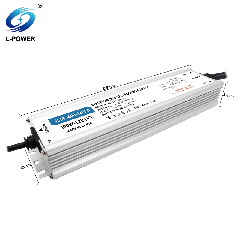 อุปกรณ์จ่ายไฟแบบ PFC กันน้ำ IP67ขับเคลื่อนแรงดันไฟฟ้าคงที่100W-400W สำหรับไฟ LED 12V/24V