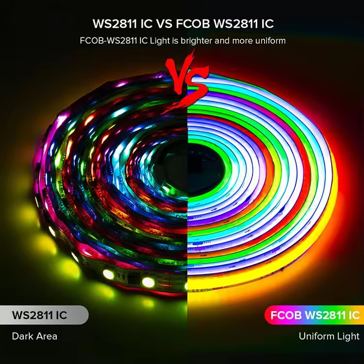 ไฟแถบ LED แบบยืดหยุ่น 12V 24V RGBIC CCT สีสันครบถ้วน แบบ Cob พร้อมเอฟเฟกต์ไล่สีแบบ Horse Running Magic Dream Color