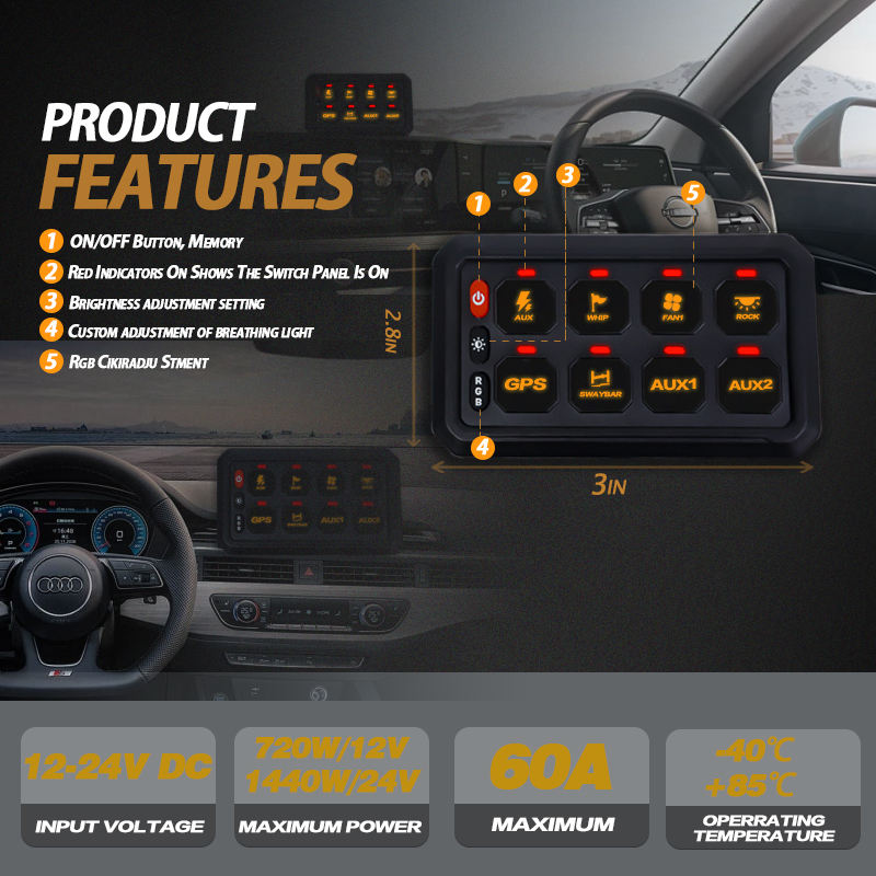 แผงสวิตช์ควบคุมไฟกระพริบไร้สายอเนกประสงค์ 12V 24V แบบ 6 ปุ่ม พร้อมระบบควบคุมวงจรและระบบ ACC