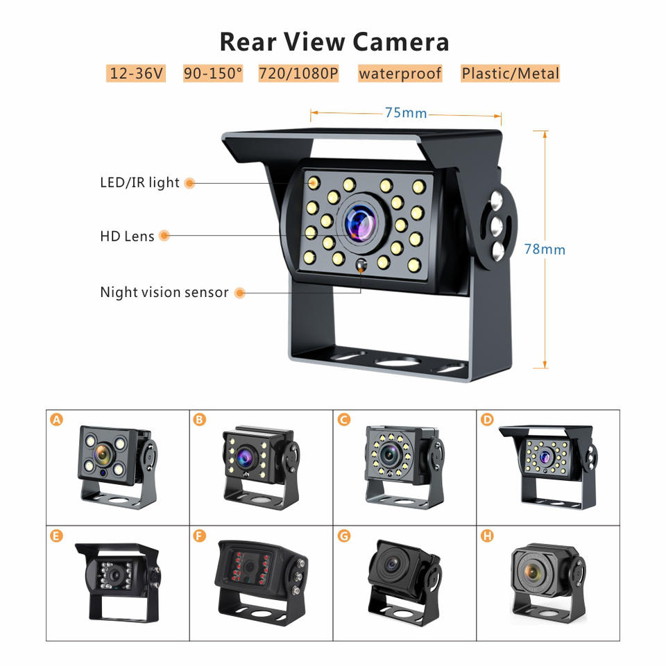 ระบบกล้องถอยหลังเลนส์เดี่ยวกันน้ำ12V 24V 4.3/5/7นิ้วอุปกรณ์ช่วยถอยหลังสำหรับรถบรรทุกรถบัสรถบรรทุก1ปี