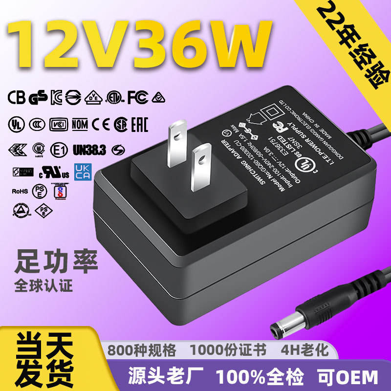 เลือกเลยสี: 12V 3A สีดำ มาตรฐาน US UL มีสินค้าพร้อมส่ง