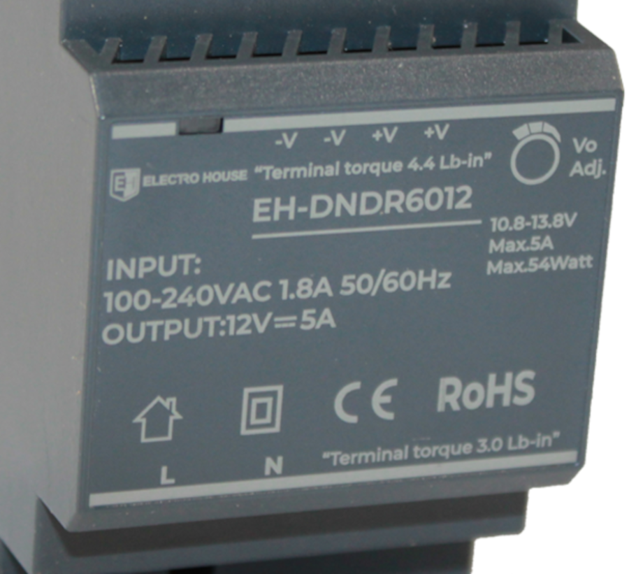 แหล่งจ่ายไฟแบบราง DIN 12V 5A 54W ปรับแรงดันได้ สำหรับไฟ LED แปลงไฟ 110V 220V AC เป็น DC สำหรับไฟ LED Strip