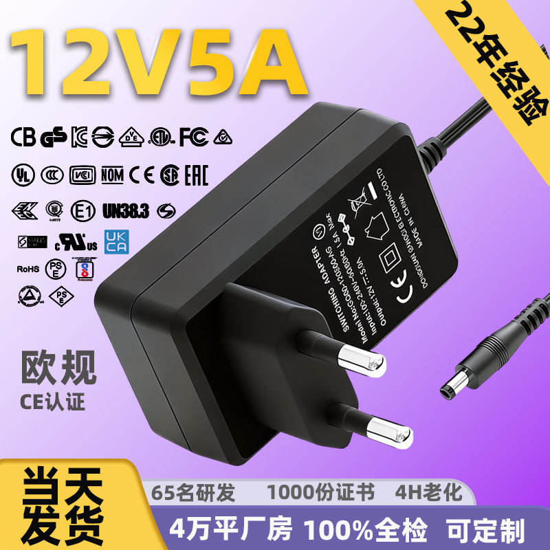 อะแดปเตอร์แปลงไฟ 12V 5A ปลั๊กยุโรป ได้รับการรับรองมาตรฐาน CE สำหรับไฟ LED แถบติดตู้ กล่องไฟ ป้ายโฆษณา