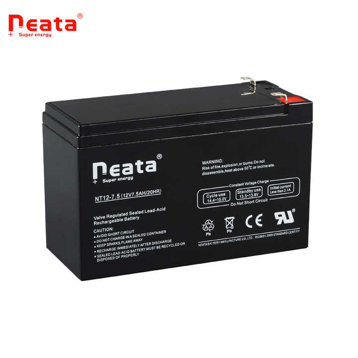 แบตเตอรี่แบบชาร์จได้ 12V 7/7.2/7.5 แอมป์ชั่วโมง แบตเตอรี่ตะกั่วกรดแบบไม่ต้องดูแลรักษา 12 โวลต์ 7.5 แอมป์ สำหรับเครื่องสำรองไฟ (UPS)