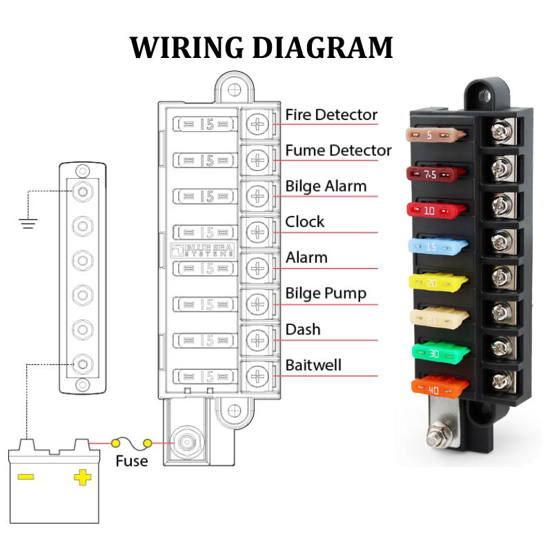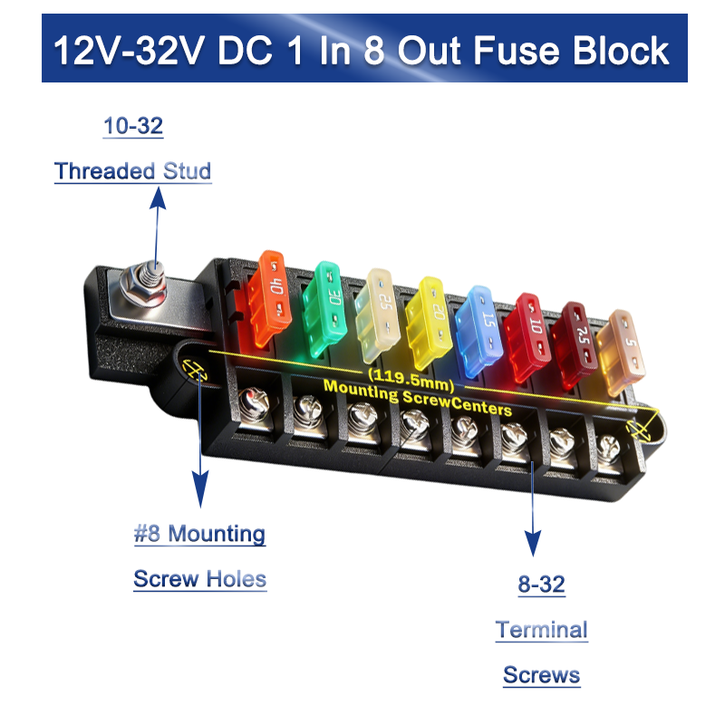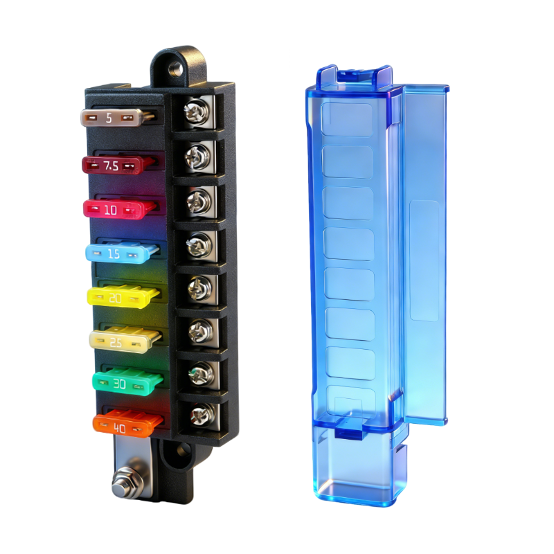 กล่องฟิวส์ใบมีดมาตรฐาน 8 ช่อง 12V ATO / ATC สำหรับยานยนต์ พร้อมฝาปิด และขั้วต่อไฟฟ้าแบบเดี่ยวพร้อมฝาครอบสีน้ำเงิน