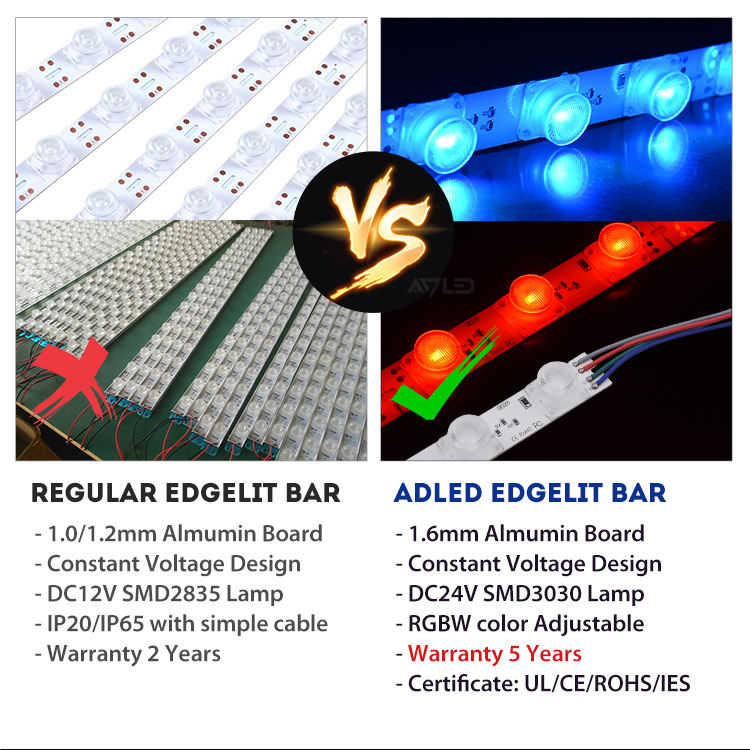 แถบไฟ LED ขอบเรืองแสง RGB แบบแท่งแข็ง 12V 18W