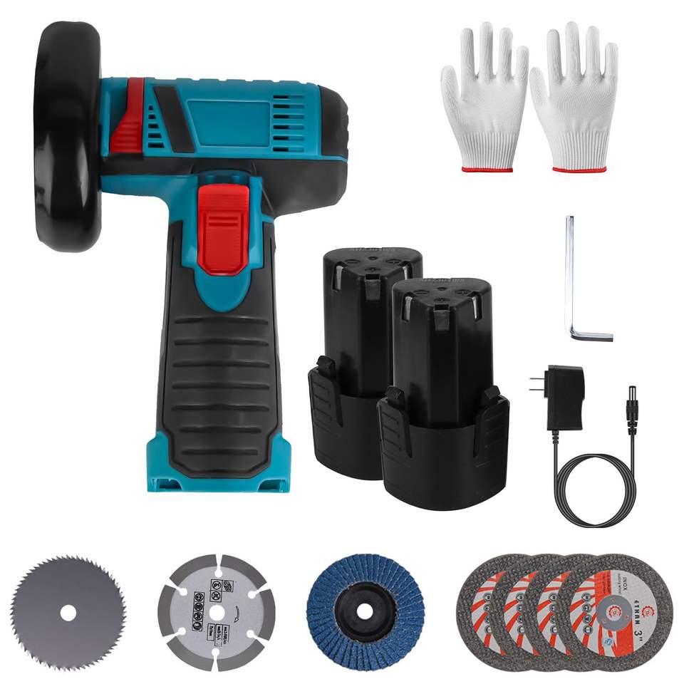 เครื่องเจียรมุมไร้สายขนาดเล็ก 12V พร้อมแผ่นเจียร 7 ชิ้น แบตเตอรี่ 1100mAh 2 ก้อน สำหรับงานตัด
