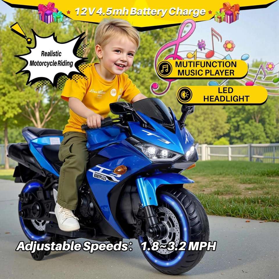 มอเตอร์ไซค์ไฟฟ้า 12V พร้อมล้อฝึกหัด แบตเตอรี่ 7Ah สำหรับเด็กอายุ 2-6 ปี แบบ unisex ผลิตจากโพลีเอสเตอร์