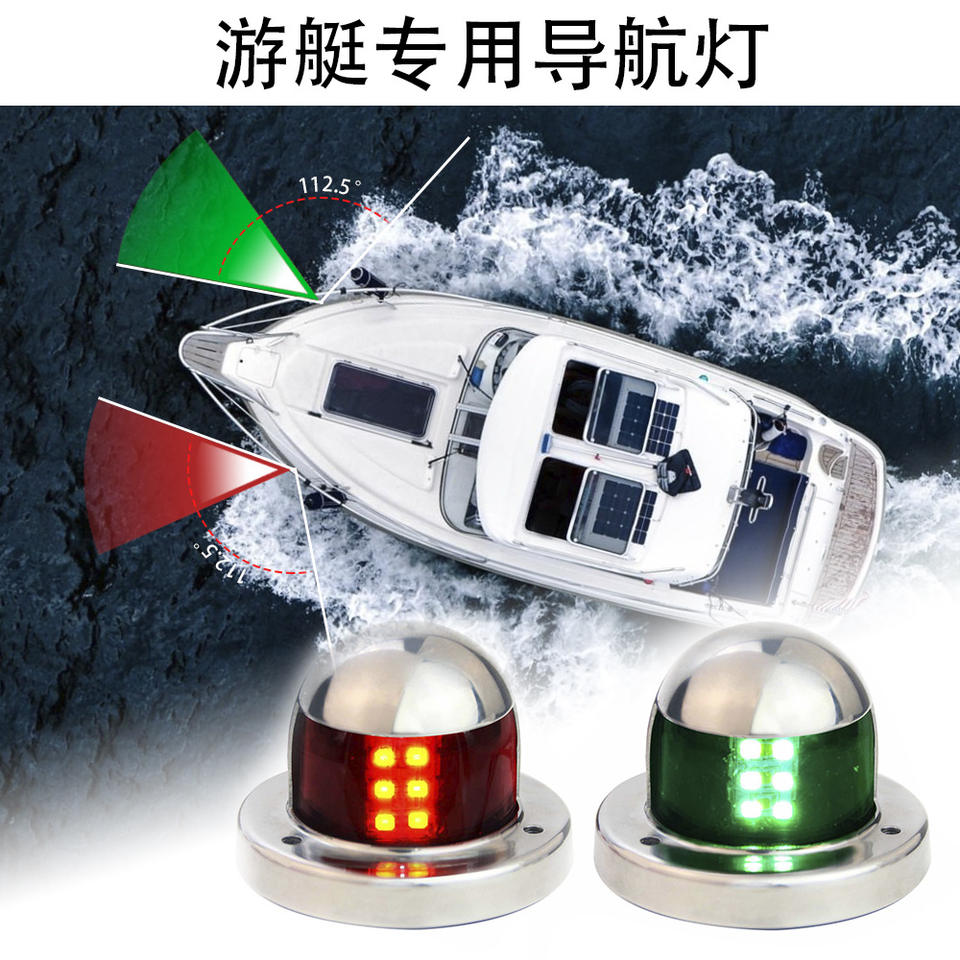 ไฟเตือนนำทาง 12V สำหรับเรือยอชท์ ไฟ LED สำหรับเรือเดินทะเล ตัวเรือนสแตนเลส 316 (ซ้ายสีแดง ขวาสีเขียว) วัสดุพลาสติก