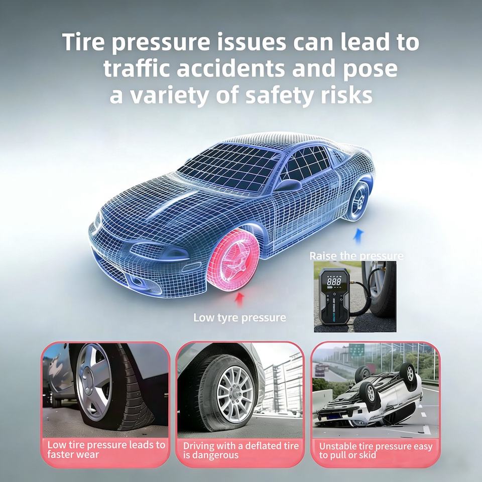 เครื่องสูบลมยางแบบพกพา 12V พร้อมแบตเตอรี่สำรองสำหรับสตาร์ทรถยนต์ ชุดจ่ายไฟฉุกเฉิน คอมเพรสเซอร์ลม และพาวเวอร์แบงค์