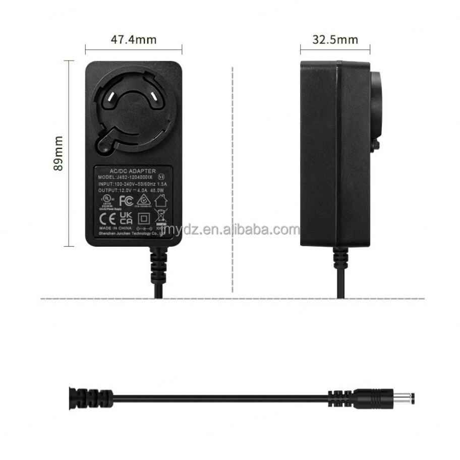 อะแดปเตอร์ 12V4A 24V 2A/48W พร้อมปลั๊กแบบเปลี่ยนได้สำหรับจีน ยุโรป อเมริกา และอังกฤษ
