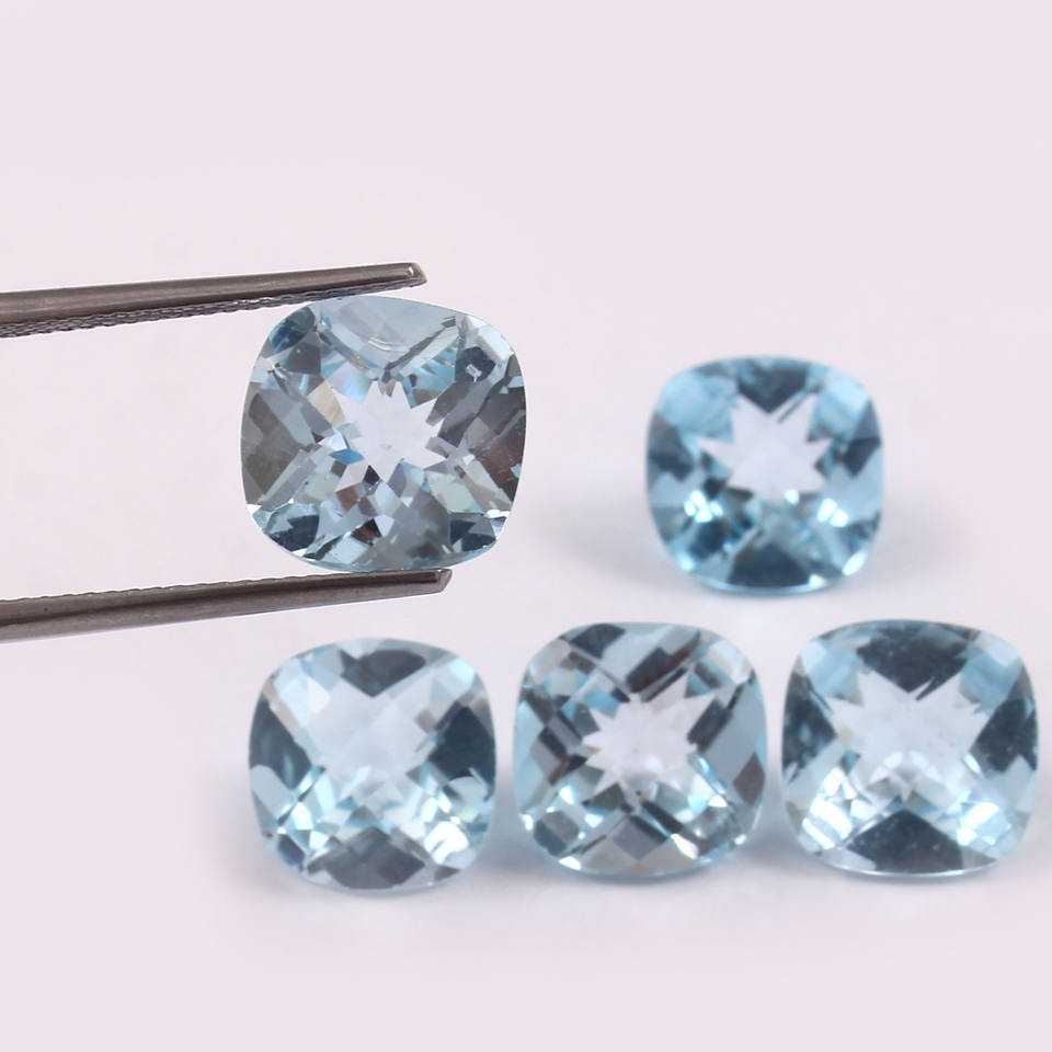 พลอยโทแพซสีฟ้าธรรมชาติขนาด 12x12 มม. รูปทรงคุชชั่น เจียระไนแบบเหลี่ยม ขนาดมาตรฐาน คุณภาพระดับ AAA ได้รับการรับรองจากผู้ตรวจสอบอิสระ สำหรับทำเครื่องประดับ