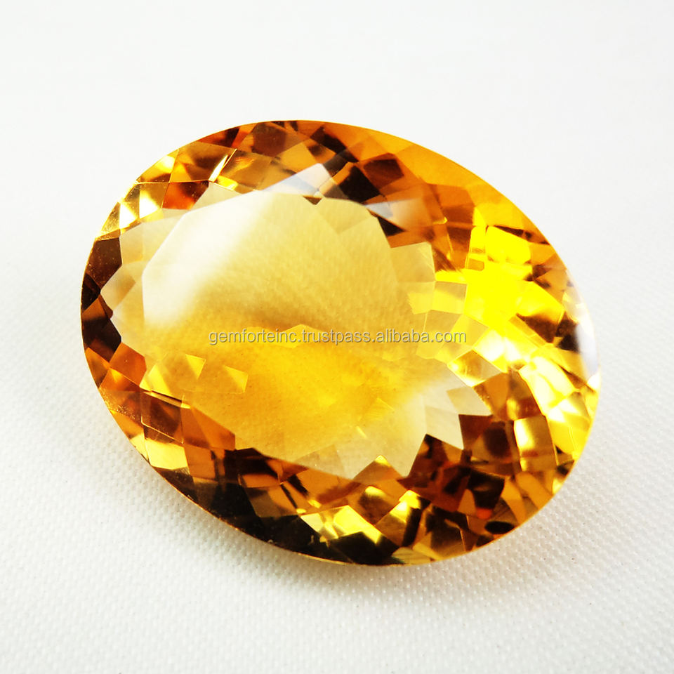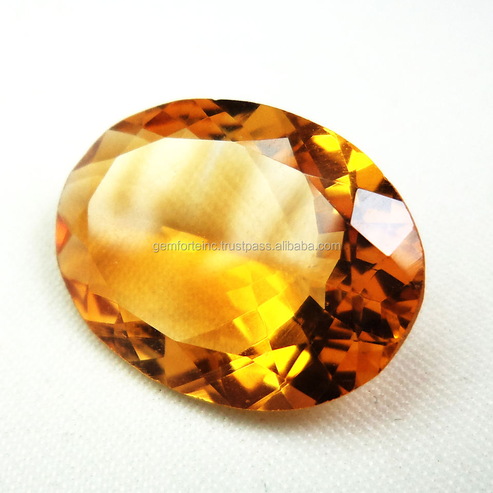 พลอยซิทรีน12X17mm พลอยสังเคราะห์ทรงรีเจียระไนแบบเหลี่ยมเพชรพลอยทรงรีสไตล์บราซิล