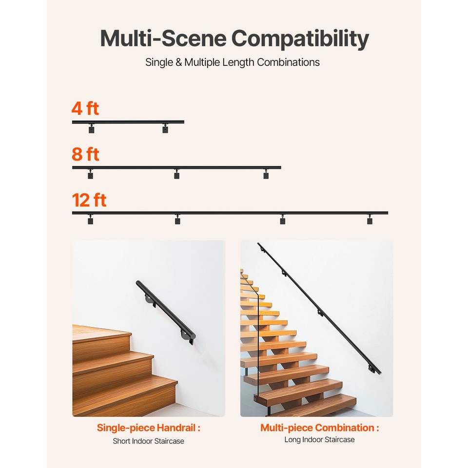 ราวบันไดและราวบันไดอะลูมิเนียมติดผนังสีดำ12ft