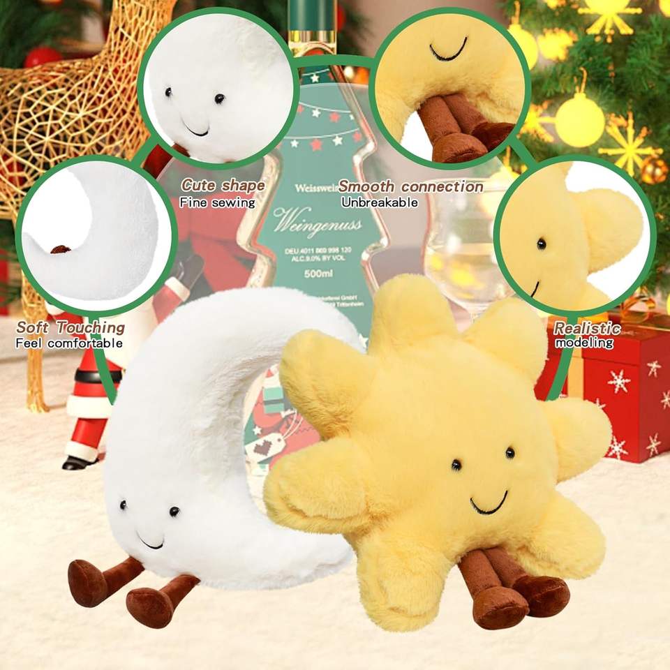 หมอนและตุ๊กตาสัตว์ทำจากโพลีเอสเตอร์ของเล่นตุ๊กตาดวงจันทร์และพระอาทิตย์ยิ้มน่ารักแบบ12in