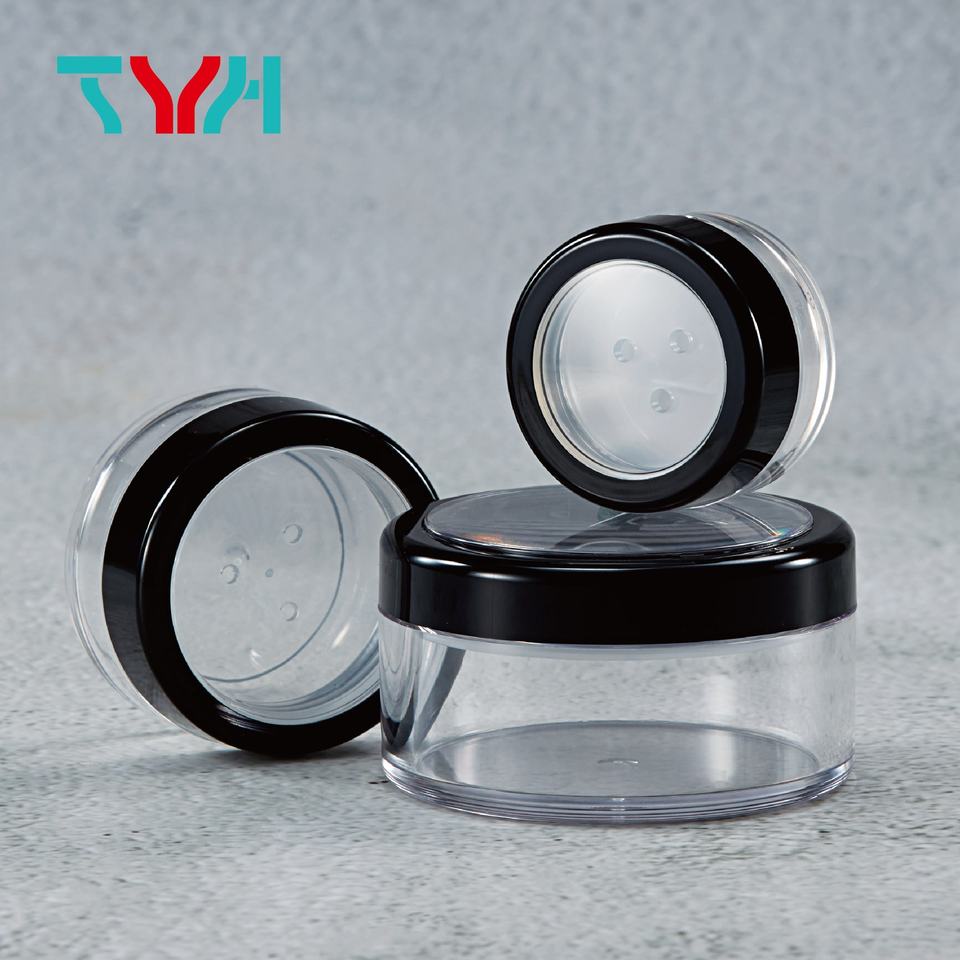 12มล. เอบีเอสสีดำกลมเปิดฝาอะคริลิค PMMA ขวดแป้งฝุ่นใสสำหรับแต่งหน้าเครื่องสำอาง (ZINH12T-1)