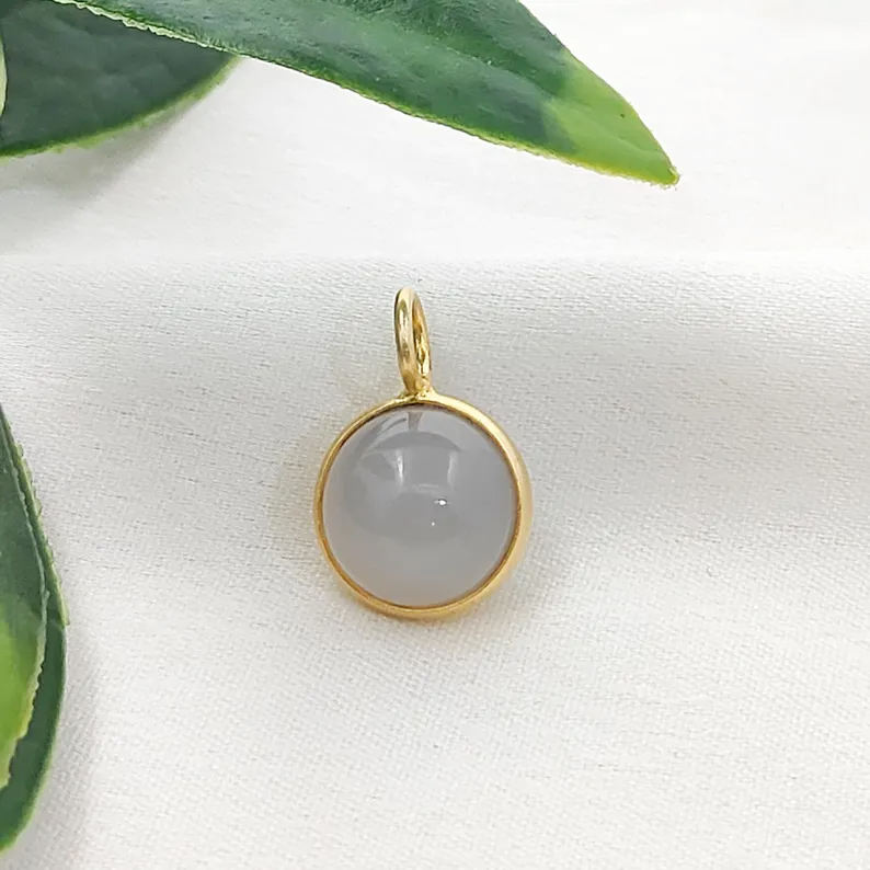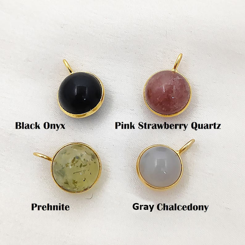 ชื่อหรือคำ:จี้หินกลมขนาด 12 มม. พร้อมขอบตัวเรือน ทำจากเงินแท้ 925 ชุบทอง งานแฮนด์เมด เครื่องประดับเสริมพลังบำบัด ขายส่งจำนวนมาก