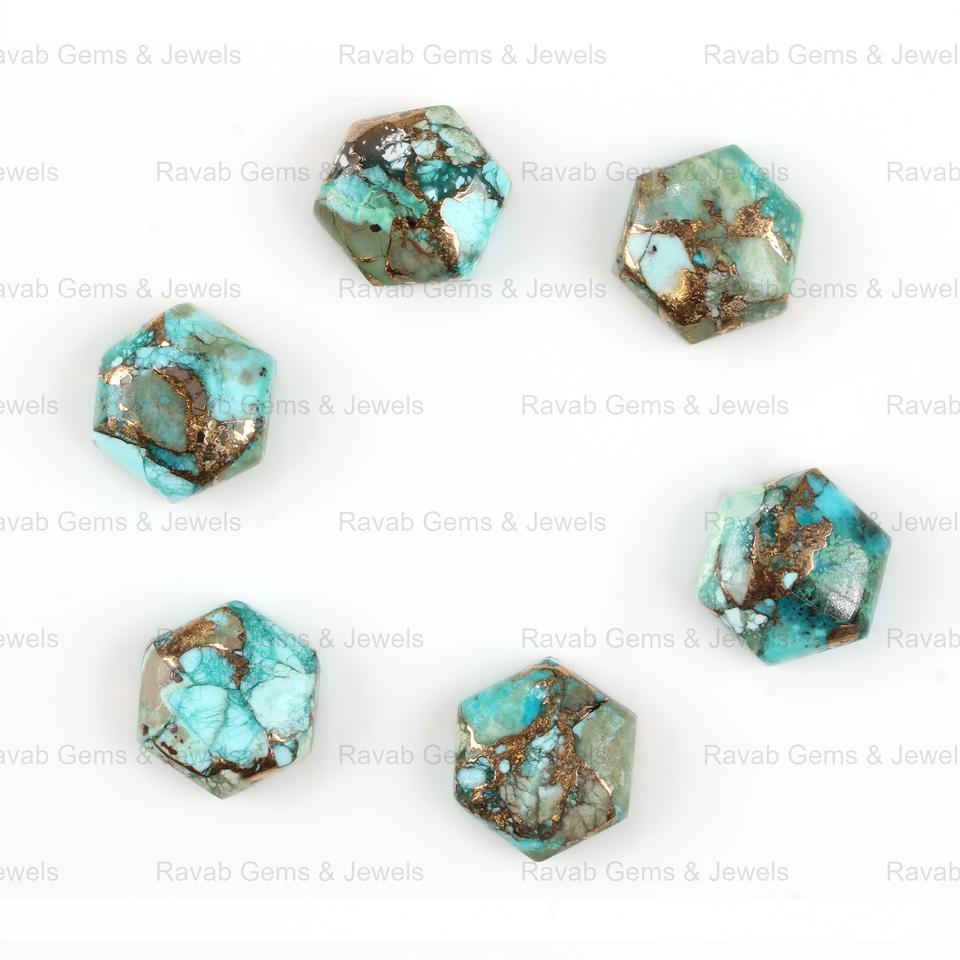 Natural Chrysocolla Copper Copper 14mm Hexagon Cabochon Gemstone